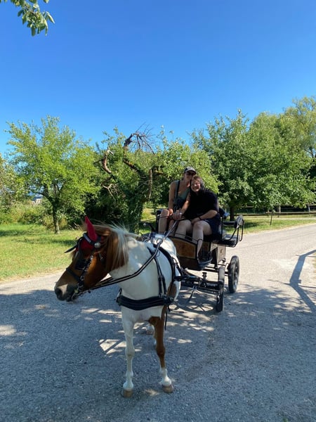 Zum Verkauf steht der liebenswerte Shetty Wallach - Hanuta. Er ist im Jahr 2018 geboren und hat ein Stockmaß von ca. 110 cm. Hanuta ist seit 5 Jahren bei mir und war in der Zeit immer top fit. Er wurde von Kindern geritten und ein- und zweispännig gefahren. Das Kutsche fahren macht ihm viel Freude und ich würde mir ein Zuhause wünschen, wo er auch weiter gefahren wird. Vor der Kutsche ist er unfassbar unkompliziert und unerschrocken, egal ob alleine oder zu zweit. Beim Reiten und im Umgang hat er 'typisch Shetty' , seinen eigenen Kopf. Man muss sich definitiv durchsetzen können und ist daher auch kein Anfängerpony. Er ist aber eine richtige Kuschelmaus und hat auch Freude an der Bodenarbeit. Bei Interesse und für weitere Informationen freuen wir uns auf Ihre Kontaktaufnahme. Für eine Probefahrt/Proberitt verlange ich 30€.