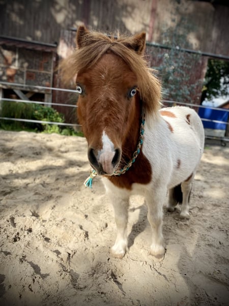 Süßer kleiner Wallach mit zwei blauen Augen , Kleiner Bobo möchte mehr gefordert werden , er ist sehr lernwillig und liebt Kinder . Allerdings hat er auch einen typischen Shetty sturkopf , daher nicht für die ganz kleinen Kinder geeignet . Er lebt im Offenstall mit 24/7 Heu und Gras , keine Rehe oder Exemer ! Zaunsicher . Bei Interesse sende ich gerne noch Videos . Meidet euch gerne . Kein Notverkauf , keine Händler !