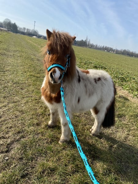 Sweet little gelding with two blue eyes, Little Bobo is eager to learn and craves more challenges. He is very trainable and loves children. However, he also has the typical Shetland pony stubbornness, so he is not suitable for very young children. He lives in a herd in an open stable with 24/7 hay and grass; no reindeer or exmoor ponies! He is secure within his fencing. If interested, I am happy to send videos. Feel free to contact me. Not a desperate sale, no dealers!