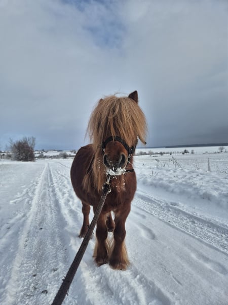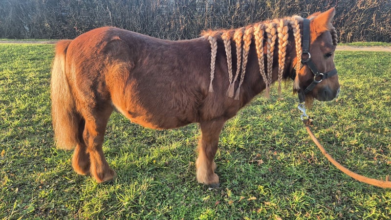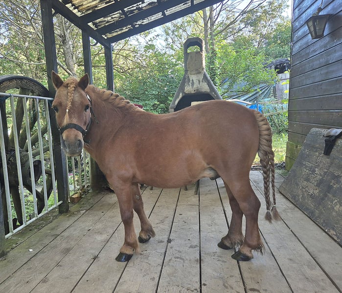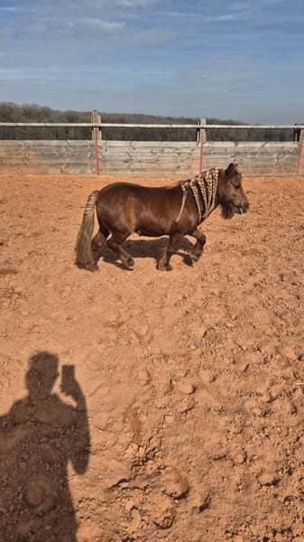 Poney entier de 13 ans. Toise 80 cm, alezan crain lavé. Il longe, travail à pied type cirque, saute 80 cm, monté et attelé. C'est un poney polyvalent aillant eu plusieurs enfants sur le dos. Ce comporte bien avec ses congénères. Il sert de poney de compagnie a ma jument de 20 ans. Pas de dermite, ni de fourbure ainsi que de bon pied. Je le propose en vente car j'ai mis ma jument en écurie et je n'ai plus le temps de faire du travail a pied avec lui.