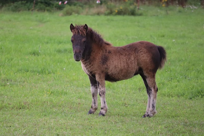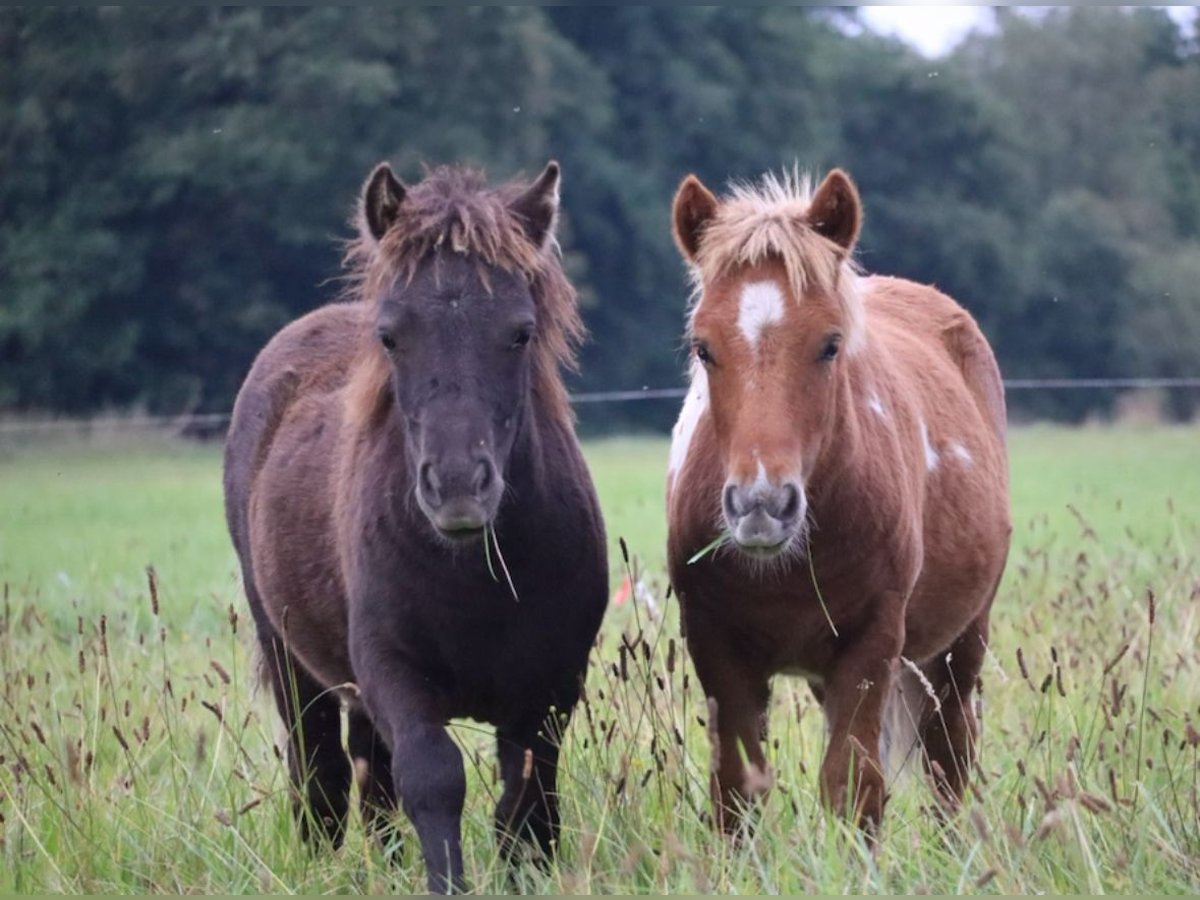 Our Shetland foals are looking for a new home starting this autumn. Our foals are raised in a well-socialized herd environment. They move safely within electric fencing and are absolutely friendly and approachable towards humans. All three foals are purebred Shetland ponies. They descend from the performance stallion Perry, who was particularly noted for his excellent temperament. Perry’s Sky (Chestnut and White) Sky was born on March 31, 2025, in our herd. His dam is our stunning chestnut and white mare Reni. He is expected to reach a final height of over 1 meter (about 13.1 hh). He is already quite tall. (Photos 1, 2, 3, 4) Perry’s Pedro (Black) Pedro was born on April 12, 2025. His mother is our chestnut mare Rebecca, who completed her performance test with an excellent score of 8.51. Like his mother, Pedro is very well-behaved and loves spending time with people. He is a true cuddle-bear. He is the smallest in the group and is expected to reach a height of approximately 90–95 cm (about 11.2–11.8 hh). (Photos 5, 6, 7) He is therefore offered at a very reasonable price. Ruth P. (Black) Ruth was born on April 4, 2025, and immediately impressed with her strong conformation. Her mother is our elite mare Rheija vom Purnitzgrund. Ruth has a wonderful, friendly character and always enjoys human company. She is expected to reach a height of approximately 100–103 cm (about 12.4–12.8 hh). (Photos 1, 5, 8, 9)