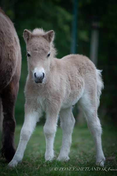 PACANNAN Súper potro Shetland con papeles completos registrado en el IFCE. Capa Mushroom. Magnífico joven pony, será ideal para el ocio, la compañía, la cría (excelentes orígenes y modelo). También se puede vender para la conducción, en pareja con su medio hermano de la misma capa: PÌOSAN SKYE. Criadero profesional declarado. Precio mostrado sin IVA.