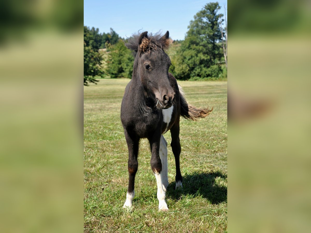 Born in May 2025, this promising Shetland pony stallion is looking for a loving home. He is expected to be just over 1 meter tall and impresses with his expressive black pinto coat, correct conformation, and very good gaits. His sire, Galant v. Hendrijntje, is a premium stallion and winner of the stallion performance test – a modern stallion with strong presence and convincing type expression. The dam's sire, Kronprinz van de Niederlanden, holds the title of Elite Stallion and has already produced numerous high-quality offspring. The proven dam line is particularly noted for its child-friendliness – it has produced several well-behaved ponies that are now successfully used in riding lessons or as leisure partners for children. The young stallion is growing up in a species-appropriate herd environment and has so far shown himself to be curious, clear-headed, and very pleasant to handle. Color: Black pinto Expected height: approx. just over 1 m Pedigree: Galant v. Hendrijntje (premium stallion, HLP winner) × Kronprinz van de Niederlanden (elite stallion) Only to be placed in horse-appropriate, loving hands. If interested, we look forward to hearing from you!