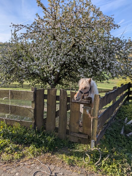 in wunderschöner Fuchsfalbscheckung, EM ca. 1,12m, Mutter Prämienstute und Oma StPr.stute sind allerbeste Kinderreitshettys Er sucht ein neues zu Hause, da er sich bei uns aufgrund fehlender Gesellshaft langweilt. Vater Wolly, Fotos gerne per whatsapp oder Zuchtverteilungsplan Mecklemburg Vorpommern. Gesund, korrekt und halfterführig, lebt im Offenstall