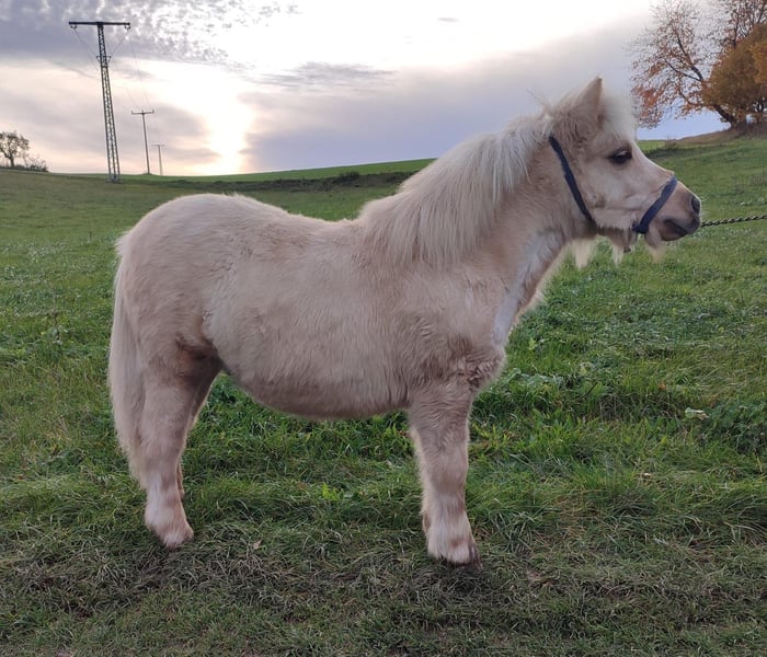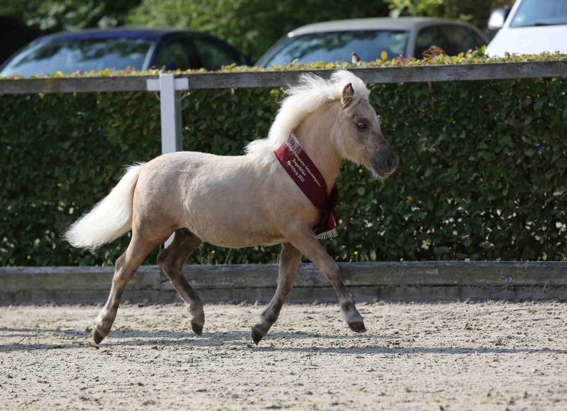 Zum Verkauf steht unser Shetlandpony Hengstfohlen Ostwind. V: PrH* O'Neill van Stal Polderzicht M: StPr Usambara MV: PrH*** Well Done Endmaß geschätzt 101 cm Er war Siegerfohlen des sächsisch-thüringischen Fohlenchampionat 2025 mit der Gesamtnote von 9,33, wobei er im Typ zwei Mal die Note 10 und ein Mal die Note 9,5 bekam, die restlichen Noten in Bewegung und Körperbau lagen alle bei 9 bzw. 9,5. Seine Mutter ist ehemalige Siegerstute des Stutenchampionats, die Vollschwester der Mutter sowie deren Tochter waren jeweils Reservesieger. Aufgrund seiner Qualität sowie durch seine Top Abstammung in der bei den originalen Shettys seltenen Farbe Isabell wird er bevorzugt als Hengstanwärter abgegeben. Die letzten Bilder zeigen jeweils die Mutter (Isabell) und den Vater (Fuchs) Händler bitte ich von Anfragen abzusehen