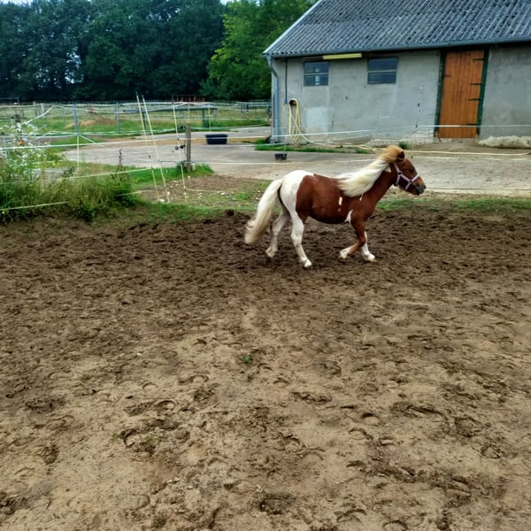 Ik heb Orion gekocht als 6 maanden oude veulen, als speelkameraad voor mijn eigen veulen. Nu zoekt hij een nieuw thuis. Bij voorkeur samen met leeftijdsgenootjes of Shetlandpony’s. Hij is vriendelijk, karaktervol zeer rustig en relaxed, want eigenlijk brengt niets hem uit zijn evenwicht. Soms kan hij koppig zijn, maar hij laat zich snel overtuigen met een paar lekkernijen. Ik kan me hem goed voorstellen als hij oud genoeg is, als kinderpony of karrettenpony. Hij kan hier ter plaatse worden aangeboden voor een onkostenbijdrage van ongeveer €200. We kijken ernaar uit om u te ontmoeten.