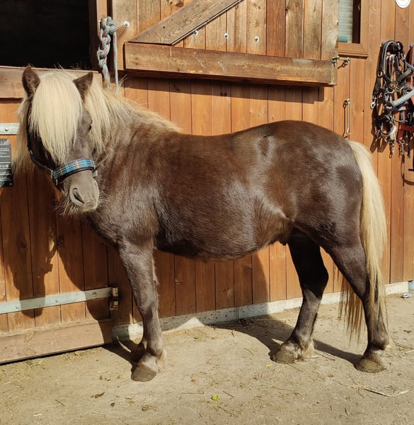 À vendre, un charmant étalon Shetland, de couleur rare Wind, né en 2022. Avec une taille au garrot de 98 cm, il est le compagnon idéal pour les grands et les petits. Ce jeune étalon montre un grand potentiel et a déjà été attelé pour s'entraîner en vue d'un éventuel examen de performance. Ce qu'il a appris doit bien sûr encore être consolidé. À l'automne, vous pourrez l'emmener à la présentation de la race si vous souhaitez l'utiliser pour la reproduction. Il a un caractère amical et est curieux. Si vous préférez un hongre, vous pouvez également le castrer à vos frais. Nous pouvons le faire sur demande, si un étalon n'est pas possible dans votre écurie. Au printemps, il a participé à un concours de saut en liberté et a obtenu la deuxième place lors de sa première compétition. Il y a encore beaucoup de potentiel. Il est en bonne santé, régulièrement vermifugé et vacciné. De plus, il a un beau pelage soigné et est bien socialisé. Si vous êtes intéressé par ce magnifique étalon Shetland de couleur absolument spéciale, nous attendons votre message avec impatience ! Les visites sont possibles à tout moment sur rendez-vous.