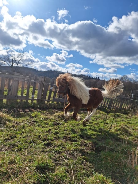 Vierjähriger Scheckenpony-Hengst (wird im Mai 4 Jahre alt) in der attraktiven Farbe Braunschecke sucht ein neues Zuhause. Er hat ein Stockmaß von ca. 88 cm und kennt bereits das Fohlen-ABC. Er ist brav im Umgang und wäre sicherlich auch für eine Familie mit Kindern gut geeignet. Auf Wunsch kann er noch gelegt (kastriert) werden – in diesem Fall beträgt der Kaufpreis 800 €. Bei Interesse oder Fragen gerne melden!