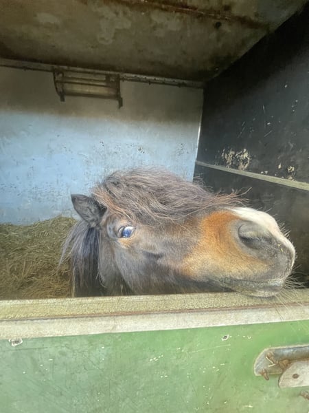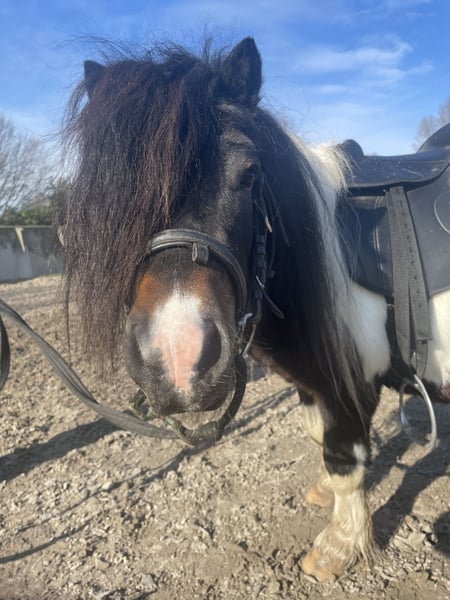 Hübscher Shetland-Hengst, 4 Jahre alt Geboren am 8. Mai 2021 Bingo zeigt typische Hengstmerkmale (er möchte überall seine Zähne einsetzen und wird enthusiastisch, wenn eine Stute vorbeiläuft), ist aber kein bösartiges Pony. Er ist sehr menschenbezogen und freut sich auf die Arbeit. Er hat keine Angst vor neuen Situationen, das Sattelauflegen hat er sofort akzeptiert, er wurde noch nie eingeritten. Er ist auf seinem rechten Auge sehbehindert und hat ein Problem mit seinem linken Hinterbein (bei Interesse sende ich gerne Videos). Die Lahmheit wird wahrscheinlich durch mehr Bewegung besser werden. Er muss außerdem noch vom Hufschmied behandelt werden. Bei Fragen stehe ich gern zur Verfügung!