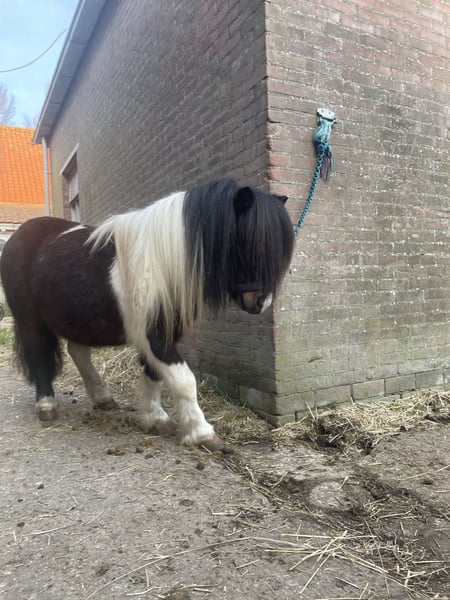 Knap shetland hengstje 4 jaar Geboren 8-5-2021 Bingo heeft zijn hengsten streekjes (overal zn tandjes in willen zetten en enthousiast worden als er een merrie voorbij komt) maar het is geen gemene pony. Hij is mensgericht en vind het leuk om aan de slag te gaan. Hij is nergens bang voor, zadel accepteerde hij direct al, nooit ingereden. Hij is slechtziend aan zijn rechteroog en heeft een slecht linker achter been ( contact me voor filmpjes), de kreupelheid zal waarschijnlijk verminderen met meer beweging. Hij moet ook naar de smid. Stel gerust vragen!