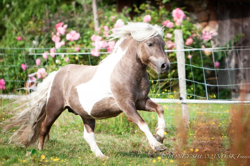 Disponible à la réservation pour le sevrage : QADALAN, superbe poulain Shetland, de robe Mushroom (base baie). Cet adorable poulain fera une très bonne base d'élevage, un adorable poney de compagnie, un superbe petit cheval de spectacle. QADALAN partira à jour de vermifuges, parages. Pour toute demande d'informations, contactez-nous.
