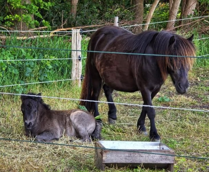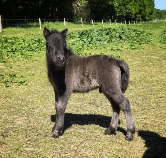 Charmigt Shetlandsföl – Svart pärla efter 1. premie hingst! Möt Vidal v. Paardenland, ett underbart svart hingstföl med glimten i ögat! Vidal är en social, trygg och välbyggd kille som söker sitt nya hem. Han har alla förutsättningar att bli en fantastisk barnponny, körponny eller sällskapshäst. Härstamning: Fader: Elithingsten Manhattan v. Stal Polderzicht (1. premie). Moder: Niska v. Paardenland (Stamboek Cat. A). Vidal kombinerar det bästa från holländsk avel – sundhet och bra temperament. Fakta: Född: 12 maj 2025. Färg: Svart. Status: Har fullständigt pass från N.S.P.S., är chippad och vaccinerad. Hantering: Van vid grimma, ledas och daglig hantering. Står idag på lösdrift med jämnåriga kompisar. Vidal finns på vår gård i Hästveda, Skåne . Ett tryggt köp av en frisk och sund ungponny med alla papper i ordning.