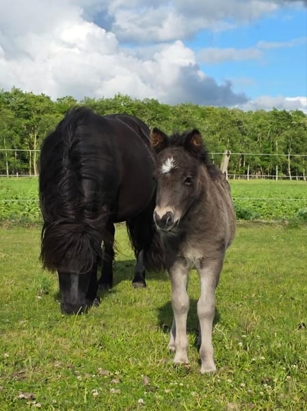 Shetlandsföl – hingst 7 månader gammal och färdig för ett nytt hem. Lätt att hantera och fin promenaden. Trevlig kille som har hela livet framför sig . Du kan ha honom samtidig som rid/ körponny och avel genom att behålla honom som hingst. e. Manhattan (KROON-stam) Snyggt svart hingstföl född 16/5-2025, import från Holland. Mycket trevligt temperament, social och trygg. Passar både som framtida avels-/utställningsponny, sällskap eller som rid-/körponny för barn. Stam: Manhattan v. Stal Polderzicht – 1. premie Hella v. Paardenland – Kroon Fakta: Förväntad mankhöjd ca 100 cm N.S.P.S.-pass, chippad, vaccinerad Verkad, avmaskad, dagligen hanterad