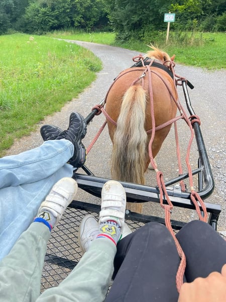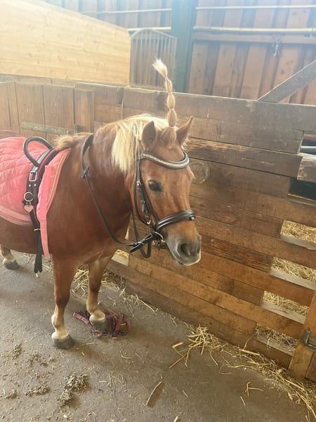 Zum Verkauf steht unsere Shetlandpony-Stute Daisy, geboren 2015. Sie ist eingefahren und zeigt besonders beim Kutsche fahren ihre große Stärke und Begeisterung. Dabei arbeitet sie motiviert und zuverlässig. Zusätzlich ist Daisy geführt geritten, wobei ihre wahre Leidenschaft eindeutig im Fahrsport liegt. Daisy ist ein tolles Pony für alle, die Freude am Fahren mit der Kutsche haben und ein motiviertes, erfahrenes Pony suchen. Kurzinfos: Name: Daisy Rasse: Shetlandpony Geboren: 2015 Geschlecht: Stute Größe: 96 cm Farbe: Fuchs Ausbildung: gefahren / eingefahren, geführt geritten Besonderheit: etwas mollig und talentiert im Fahrsport Bei Interesse oder Fragen freuen wir uns über eine Nachricht.