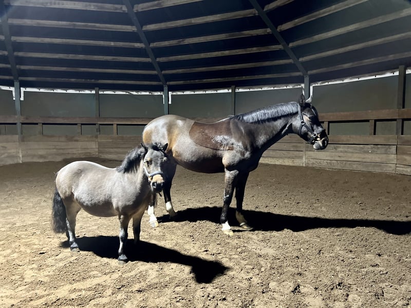 Wir verkaufen eine Niederländische Prämienstute 11 Jahre, die im Fundament hochkorrekt und vom Interieur unvergleichlich ist. Fürstin Zuckerwatte steht in unserem Sportstall mit 2 anderen Shettydamen beisammen und kommt trotz Pflegebeteiligungen aus meiner Sicht zu kurz. Fürstin ist keine Mogelpackung. Die Stute ist eingeritten, wobei ich mir viel lieber eine Person die ggfs. auch Erwachsen ist und die Freude zum Einfahren in Betracht ziehen kann. Die Stute ist unglaublich fein nicht nur in Optischer Hinsicht sondern auch sehr gut ausgebildet, sensibel und dankbar für jede Art der Zuwendung. Die Stute hat unglaubliche schöne taktklare Bewegungen, ein aktives Hinterbein und insgesamt drei sehr gute Grundgangarten, eher sehr selten so für dieses Ponymass zu finden. Sie hatte ein Fohlen, dieses allerdings nicht in unserem Besitz. Fürstin beißt und schlägt nicht, ist sehr sozialverträglich, reagiert auf die feinen Signale des Menschen, ist vorsichtig, und hört immer zu wenn Anforderungen gestellt werden. Die Stute hat auch viel Temperament, ist sehr ausdauernd, kommt gerne als Handpferd mit in den Wald oder geht ausgiebige Runden mit dem Hund gemeinsam spazieren. An der Longe, auch mit Knotenhalter zeigt Fürstin sich als Musterschülern. Fürstin hat volles Niederländisches Papier, ist gechipt, entwurmt und hat einen Equidenpass. Ihre Zähne sind wie eine Perlenschnur ohne Fehlstellungen. Ihre Hufe sind sehr schön, regelmäßig gemacht, ebenso wird Fürstin dem Physio / Osteopathen 2x im Jahr vorgestellt. Sie hatte noch nie Rehe oder Exem, mag es allerdings im Sommer lieber mit Fliegendecke zu stehen. Fürstin soll NICHT als Beisteller das Dasein in einer Pferdebox fristen und nur ab und zu raus geholt werden. Da die Anforderungen zwischen Warmblütern und so kleinen Pferdchen wirklich grundsätzlich verschieden sind, ist eine Haltungsform unter ihresgleichen zu präferieren. Die Stute braucht eben nur ganz wenig, dafür allerdings erstklassiges Rauhfutter und Mineralien. Bitte nur ernstgemeinte Anfragen für dieses absolute Juwel an Ponydame unter Angabe von vollständigen Namen an mich adressieren. Kein Schulbetrieb, Händler oder Anfragen von Mädels die sich ein Pony zusammen kaufen wollen. Es ist kein Notverkauf