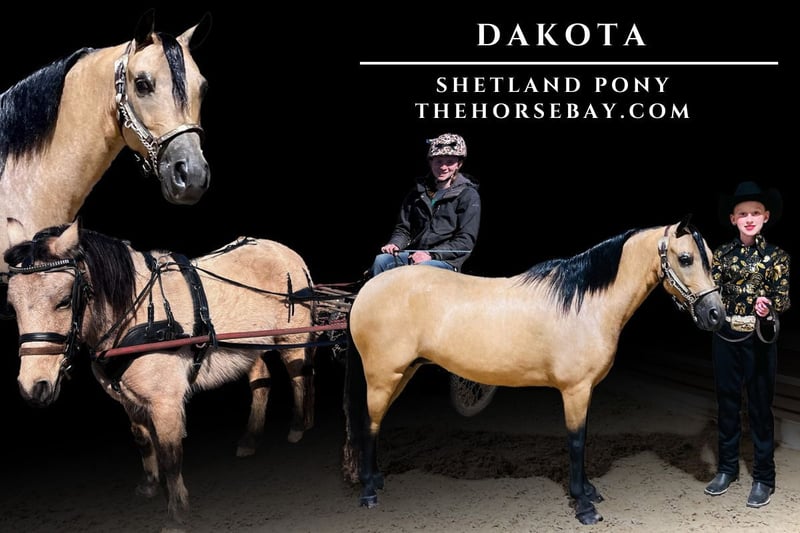 OPEN BIDDING ON THEHORSEBAY,COM. SALE ENDS ON 08/20 @ 4PM CT. More information is available on the website, including an UTD vet inspection, Coggins, video, images, and the owner's contact information to ask questions, request information, or make arrangements to come to visit. Dakota is a well-bred registered foundation in Shetland. She can go in any direction and loves to work. She has been ridden English and Western, roped off of, moved cattle, English on the flat or over jumps. She also jumps in hand and has been started on trail obstacles and in the cart. She has been used for Leadline and ponied off of horses. She is not mare-ish but is toward the top of the pecking order. Rides out alone or in a group and can keep up with the big horses. At the 2024 ASPC Shetland Congress, she was grand champion and reserve grand champion in her undersaddle classes. She was third in a big color class with a 10-year-old kid. She was a great mom and produced beautiful babies. You can’t go wrong with her bloodlines. For size reference, The kids in the videos are 4’ 9” and 70 lbs And 5’ 10” and 125 pounds.