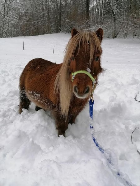 Selling a calm 16-year-old Mini Shetland pony mare. 80 cm tall. Works well in riding therapy (led and ridden by children), driven in a pair, traffic safe. Can perform circus tricks such as bowing, kneeling, rearing, lying down, shaking her head, laughing, Spanish walk, etc. Super smart and cuddly little mare. Wants to work and be kept busy. Rank in our herd is medium. No founder or eczema.