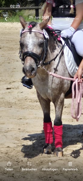 Leider ist irgendwann die erste Ponyzeit vorbei. Schweren Herzens suchen wir für unsere Maus einen neuen kleinen Besitzer dem Sie zuverlässig das reiten und den Umgang mit dem Pony beibringen darf. Auch hat sie großen Spaß vor dem Sulky, jedoch ist sie seit zwei Jahren nicht gefahren. Außer die Kinder mit dem Schlitten… Videos und Bilder können bei ernstem Interesse gerne zugesendet werden.