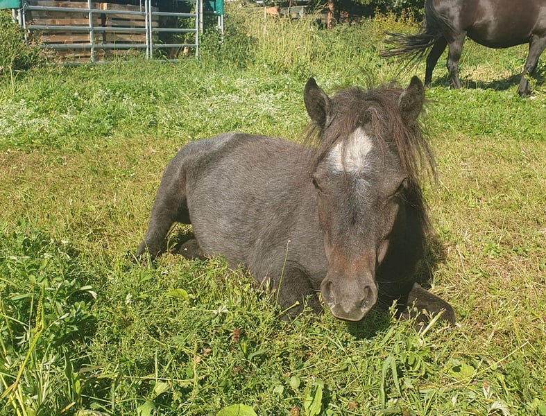 Es fällt mir nicht leicht diese Zeilen zu schreiben. Wir müssen uns schweren Herzens von unserer lieben Shetty Stute Puppy trennen. Sie wird im April 2 Jahre und hat zurzeit ein Stockmaß von 95cm, Endstockmaß wird 1,05m wie ihre Eltern. Puppy ist ehr vom alten Schlag sehr stabil gebaut. Die Fellfarbe ändert sich noch laut meinen Tierarzt wird sie ein Schimmel wie ihr Papa, weil sie schon jetzt ausschimmelt. Sie ist auch interessant für die Zucht da beide Eltern gekört sind und volle Papiere haben. Diese müssten vom neuen Besitzer beim Zuchtverband beantragt werden wenn mit ihr gezüchtet werden soll. Zurzeit hat sie einen normalen Equidenpass. Sie wird bei uns von zwei Mädchen regelmäßig geputzt, geführt, Hufe gekratzt. Ich hatte sie auch schon mit als Handpferd das macht sie auch super lieb und kennt Autos, Traktor, Hunde... Leider fehlt mir die Zeit sie regelmäßig zu bewegen durch Arbeit, Hausumbau und unsere anderen Pferde. Puppy wird sicher mal ein super Kinderpony wie ihre Eltern. Mutti kann vor Ort besichtigt werden. Papa ist leider im Januar verstorben und hat uns noch dieses wunderschöne Fohlen geschenkt. Puppy Mutti läuft auf Kindergeburtstagen, Schuleinführungen und als Turnierpony auf Führzügel Wettbewerben, ihr liegt es also im Blut Papa war auch trotz Hengst ein super liebes Kinderpony und lief auch sehr gern am Sulky. Puppy kennt schon Anhänger fahren und es macht ihr nichts aus. Bei uns war sie nie krank. Hufe sind top sagt mein Hufschmied und sie hat auch kein Sommerexzem. Sie hat tolle lange Mähne. Einfach ein Traumpony! Puppy steht bei uns im Offenstall in einer Stutenherde mit viel Auslauf und Platz zum toben. Wer ein absolutes Verlasspony für Kinder sucht oder eine neue Zuchtstute findet mit Puppy ein super schönes Shetlandpony. Das vorletzte Bild ist Puppy mit ihrer Mutti. Das letzte Bild war Puppy ihr Papa. Bei Interesse würden wir uns über eine kurze Beschreibung freuen wie Puppy im neuen Zuhause leben würde, da es uns sehr wichtig ist sie an ein neues Zuhause zu vermitteln, wo sie gut umsorgt und geliebt wird. Sie geht nur wenn für uns alles passt. Wir freuen uns auf eure Nachrichten ♡