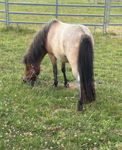 Color-Changing Mare – Young, Beautiful & Friendly ✨ Age: 2 years Approximate height: 90 cm (about 14.1 hh) This small mare is truly eye-catching! With her unique color-changing coat and calm, balanced temperament, she has everything it takes to become a loyal companion. ✅ well-behaved during grooming ✅ reliably leads on a lead rope ✅ familiar with tarps and small obstacles ✅ very accustomed to people She impresses with her gentle nature and serenity, and over time, she will develop a truly special coat color – a real gem for pony enthusiasts! For grooming, walks, cuddling, and getting to know each other, we charge €15 to discourage riding tourism – for the well-being of the horse. If purchased on the same day, this fee will be credited towards the purchase.