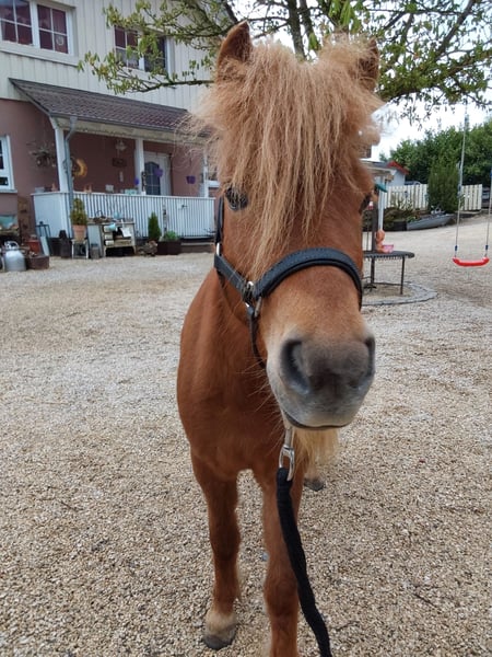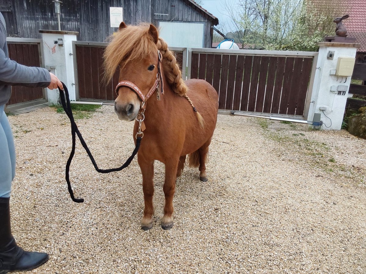 Zum Verkauf steht ein besonders liebenswertes und vielseitiges Shetland Pony mit hervorragenden Eigenschaften für Familie, Freizeit und Zucht. Die Stute, geboren am 01.06.2021, präsentiert sich mit einem Stockmaß von ca. 80 cm und der attraktiven Fellfarbe Fuchs. Besonders hervorzuheben ist ihre wunderschöne, dichte Mähne, die ihr ein sehr ansprechendes Erscheinungsbild verleiht. Charakterlich überzeugt sie durch ihr ausgesprochen freundliches, ruhiges und umgängliches Wesen. Im täglichen Umgang zeigt sie sich brav und unkompliziert, wodurch sie sich ideal für Kinder eignet. Sie ist den Kontakt mit Kindern gewohnt und kennt zudem verschiedene Tiere wie Hunde, Katzen und Hühner, was sie zu einem perfekten Familienpony macht. Auch in der Ausbildung bringt sie bereits eine solide Grundlage mit: Sie kennt das Tragen eines Sattels, lässt sich problemlos führen und wurde bereits longiert. Zudem ist sie den Hufschmied gewöhnt und zeigt sich auch hier kooperativ und gelassen. Haltungsseitig ist sie aktuell im Offenstall untergebracht und gut sozialisiert. Gesundheitlich befindet sich das Pony in einem einwandfreien Zustand („kerngesund“). Sie ist regelmäßig geimpft, gechippt und ihre Hufe wurden stets fachgerecht gepflegt. Ein weiterer großer Pluspunkt ist ihre Zuchttauglichkeit: Sie verfügt über vollständige Papiere inklusive Abstammungsurkunde und hat bereits problemlos ein Fohlen geboren. Damit ist sie sowohl für die Zucht als auch als zuverlässiges Freizeitpony bestens geeignet. Fazit: Ein äußerst vielseitiges, kinderliebes und gesundes Shetland Pony mit Zuchtpotenzial und solider Grundausbildung. Ideal für Familien, Einsteiger oder Züchter, die Wert auf Charakter, Gesundheit und unkomplizierten Umgang legen.