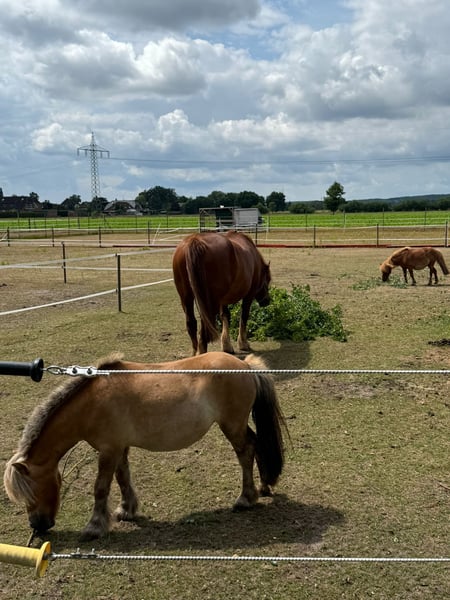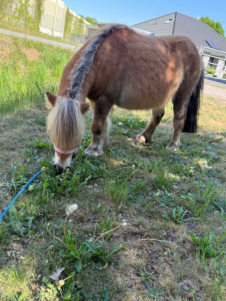 Verkaufe Shetland Pony Stute – Perfekt für die Freizeit! Zum Verkauf steht eine bezaubernde Shetland Pony Stute, geboren im Jahr 2021. Sie ist ein wunderschöner Fuchs mit einem freundlichen Wesen und einem Stockmaß von 91 cm. Das Pony ist ideal für Freizeitaktivitäten geeignet und begeistert durch ihren charmanten Charakter. Sie ist gesund, gut gepflegt und kennt den Umgang mit Menschen. Perfekt für Kinder oder Einsteiger, die ein kleines, zuverlässiges Pony suchen. Mit Ihrer Ausbildung haben wir langsam und schonend begonnen. Sie beherrscht die grundsätzlichen Sachen (Fohlen ABC), kennt Führen, Spazieren gehen, Anhänger fahren. Sie kennt Sattel (ohne Reitergewicht), kennt Trense und wurde bereits longiert. Sie kennt Kinder, Hunde, Trecker, Hühner und alles was noch so auf dem Land zu erleben ist. Sie kann von Kindern ohne weiteres gehändelt werden und zeigt sich auch dort als super freundlich und artig. Freaky steht in einer gemischten Herde im Offenstall. Sie zeigt sich auch dort als ruhgies Herdenmitglied und versteht sich sowohl mit Shetty´s als auch mit Kaltblütern. Sie ist frisch Tetanus geimpft, die Zähne wurden im April 2025 kontrolliert. Wir können uns Freaky toll als Pony für Kinder oder auch zu Therapie Zwecken vorstellen. Sicherlich ist Sie auch für die Zucht interessant. Kurz Daten: Name: Paxelle v. T Terp Rufname: Freaky Größe: 91 cm Geboren: 11. Juni 2021 Rasse: Shetland Pony Geschlecht: Stute Vater: Actionbreaker v.d. Leijsenhoeve Mutter-Vater: Expensive v. Bromishet Niederländisches Papier Keine Rehe, kein Ekzem AKU kann gerne gemacht werden (bei Kostenübernahme) Bei Interesse stehe ich gerne für weitere Informationen und eine Besichtigung zur Verfügung!