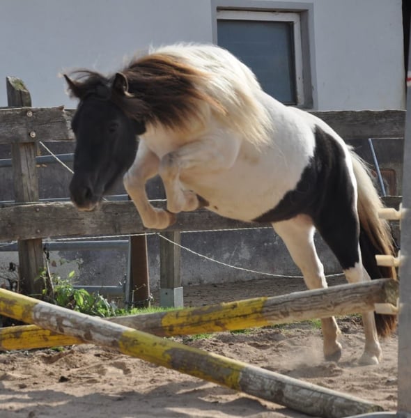 Diese hübsche Shetlandpony Stute ist 6 Jahre alt, 105 cm groß und bringt alles mit, was man sich für ein zuverlässiges Kinder- und Familienpony wünscht. Sie ist freundlich, gelassen und im täglichen Umgang absolut unkompliziert. Abstammungstechnisch ist sie sehr interessant: Ihr Vater ist Kronprinz van den Niederlanden, der Muttervater Fabian – eine Kombination, die sich in Typ, Fundament und Charakter bemerkbar macht. Die Stute ist geritten und wird auch von ganz kleinen Kindern sicher und brav bewegt. Sie hat gute Grundgangarten, ist stets kooperativ und zeigt sich unter dem Sattel motiviert und angenehm. Auch züchterisch überzeugt sie: Sie hatte bereits zwei tolle Fohlen, beide korrekt, typvoll und mit sehr gutem Wesen. Damit eignet sie sich sowohl als zuverlässige Zuchtstute als auch als liebevoller Familienzuwachs. Bei Interesse freue ich mich über eine Nachricht!