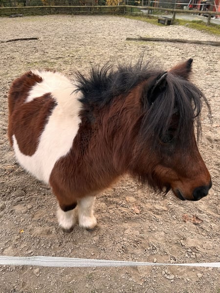 Schweren Herzens verkaufe ich meine Mini Shetty Stute, da ich zeitlich einfach nicht mehr gerecht werden kann. Die kleine Maus ist 5 Jahre alt und 87cm klein, super lieb, verschmust und absolut unerschrocken. Sie geht brav auf den Anhänger und ist ebenfalls lieb beim Schmied. Sie hat leider ein leichtes Sommerekzem, daher wäre Erfahrung damit wünschenswert. Kontakt mit Kindern kennt sie auch, und ist dabei super lieb und vorsichtig, es saßen auch schon kleine Kinder auf ihr, allerdings sehe ich sie aufgrund ihrer Größe nicht als Reitpony. Sie möchte beschäftigt werden und ist sehr gelehrig. Sie arbeitet sehr gut mit und ist dabei immer motiviert. Daher verkaufe ich sie nicht als beisteller, sondern suche jemanden der wirklich Lust hat sich mit ihr zu beschäftigen. Sie wird bei 24/7 Heu Fütterung im Offenstall gehalten. Und sie ist Zaun sicher!! Sie besitzt einen pass ohne Abstammung. Bei ernsthaften Interesse oder Fragen gerne melden