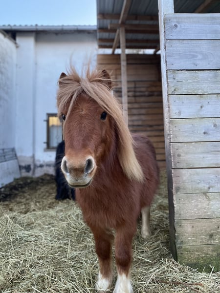Shetlandpony Staatsprämienstute zu verkaufen – 6 Jahre, Fuchs-Schecke Zum Verkauf steht eine hübsche Shetlandpony-Stute mit einem Stockmaß von ca. 1 m. Es handelt sich um eine Staatsprämienstute, was ihre Qualität und Abstammung besonders hervorhebt. Die Stute ist ein auffälliger Fuchs-Schecke mit zweifarbigem Schweif, heller Hinterhand und einer Mähne im typischen Fuchsfarbton. Zudem hat sie vier weiße Beine – ein echter Hingucker mit besonderer Ausstrahlung. Sie wird dieses Jahr 6 Jahre alt und ist noch roh, also nicht eingeritten oder eingefahren. Sie zeigt sich frech und charakterstark, daher eher kein Anfängerpony. Aktuell wird sie bereits: * longiert * in der Bodenarbeit gearbeitet * und macht erste kleine Sprünge Sie bringt somit eine gute Grundlage für die weitere Ausbildung mit. Die Stute hat bisher noch kein Fohlen gehabt. Aufgrund ihres Alters und Temperaments eignet sie sich besonders für erfahrene Ponyhalter, die Freude daran haben, sich ein Pony selbst auszubilden. Weitere Infos gerne auf Anfrage.