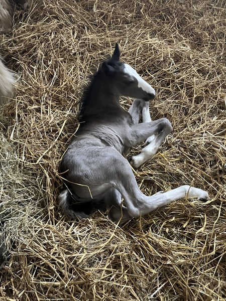 Potro de cría versátil en tamaño final, hijo de semental BRP, de raza Welsh D x Irish Cob