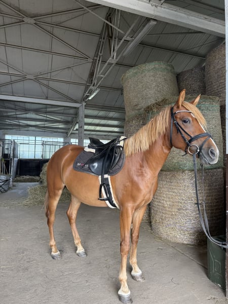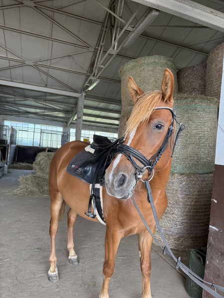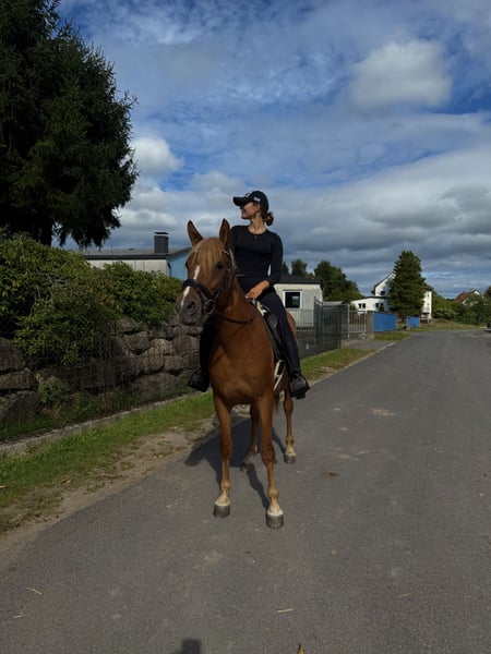 Zum Verkauf steht eine 4-jährige Fuchspony-Stute mit einem Stockmaß von ca. 1,55 m. Sie ist ein echter Allrounder und bringt bereits jetzt alles mit, was man sich von einem verlässlichen Freizeitpartner wünscht. Ob im Gelände, auf dem Platz oder in der Halle – sie zeigt sich stets brav, nervenstark und unerschrocken. Auch auf dem Springplatz war sie schon und kennt bereits einen kleinen E-Parcour. Trotz ihres jungen Alters ist sie sehr ausgeglichen und wird regelmäßig von Kindern und Reitanfängern geritten. Im Umgang ist sie menschenbezogen, lieb und unkompliziert. Ob beim Putzen, Hufe auskratzen oder Verladen – alles kein Problem. Auch beim Schmied zeigt sie sich brav und gelassen. Aktuell läuft sie barhuf. Ein echtes Verlasspony, das noch viel Potenzial mitbringt und sicher ein toller Partner für Freizeit, später kleine Turniere oder einfach zum Liebhaben ist. Der Preis liegt bei 6.500 € VHB. Bei Interesse freuen wir uns über eine Nachricht oder einen Anruf. Probereiten ist nach Absprache gerne möglich.