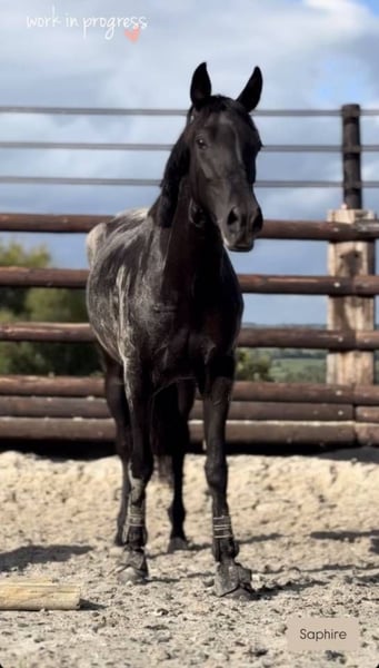 SAPPHIRE Hermosa poni ONC • 6 años • 1.48 m • Castrada • Papeles belgas Una poni voluntariosa, un poco verde pero nunca agresiva. Fácil de manejar en el día a día, ideal para un jinete con algo de experiencia, no es para principiantes, pero tampoco hace falta ser un profesional 😉 En trabajo: * En libertad, muy buen salto, salta con fuerza y estilo * Bajo la silla, fundamentos de doma adquiridos, realiza un recorrido de obstáculos de 70 cm (ya ha saltado algunas barras más altas en casa) * Aún en proceso de formación, pero con un gran potencial para progresar rápidamente con alguien dulce y coherente. Potencial para 110 cm a largo plazo. En exterior: ¡Una compañera de vida en las excursiones! Le encanta, pasa por cualquier sitio, sola o en grupo, tranquila, reflexiva y agradable. En manada, es valiente, bastante sumisa y respeta perfectamente las vallas. Transporte y cuidados: Se monta fácilmente en furgón o camión, muy tranquila para todos los cuidados. (Paseos, esquilado, ducha, herrador, etc.) Una poni sana, encantadora y llena de futuro, lista para evolucionar junto a su próximo jinete ❤️ El precio irá ajustándose con el tiempo y el trabajo realizado. ✅ Vacunada, desparasitaciones, dentista y herrador al día. 📍 Bélgica WhatsApp: 0032479481088