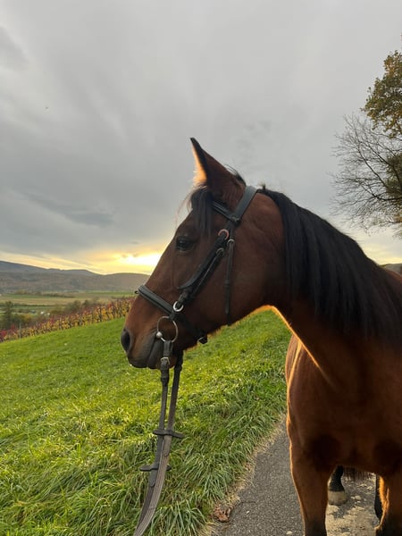 Sie ist kinderlieb, brav im Umgang und sehr geländesicher. Beim Ausreiten zeigt sie viel Go, bleibt dabei aber stets kontrollierbar. Die Stute eignet sich ideal als zuverlässiges Ausrittpferd oder als Beisteller. Ein Meniskus war angerissen, ist jedoch verheilt und aktuell unproblematisch