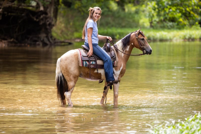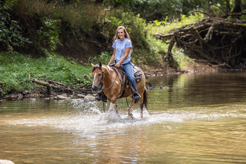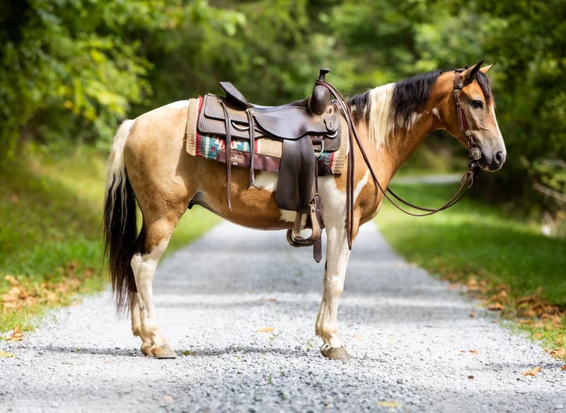 ONLINE AUCTION Place your bids at www.PlatinumEquineAuction.com Starting Bid $3500 Auction ends September 22nd, 2024 Need a new saddle? Check out White Rock Saddles on our website or Facebook! Butterscotch is every bit as sweet as his name! If you’re looking for safe and flashy, he’s got it all! The ultimate package, Butterscotch stands at 12.3 hands tall and rides just like the big horses do. He is broke, broke, broke! He’s the pony that raises children from the time they start riding until they become young adults. At 9 years old, he has proven himself time and time again, and still has everything left to give. He is honorable, honest and consistent. Butterscotch has been ridden by beginner children on the trails and is proud to do so, watching his footwork every step of the way. He crosses any obstacle with confidence, you can rest assured your children have an autopilot ride. He will ride in the back, middle, front or even alone. Turn him loose with your young riders and see their confidence soar! If play days and fun shows are your style, he has the means to excel in just about any class. He has the buttons and handle you are looking for, yet he is 100% forgiving and tolerant of mistakes. He is a fun, well rounded guy in every aspect. He will neck rein, back up, and catch both leads loping a circle. Not only is he broke to ride, he is also broke to drive! He has been used to pull a small carriage! He is also broke for some small farm implements such as a mower. He will be traffic safe and sound in every way. Butterscotch is every dream come true, and he is waiting to fulfill those dreams for the next kiddo! Contact PR Quality Horses Colton 606-748-9009 Haley 859-475-2621 Located in Ewing, KY. ONLINE AUCTION Place your bids at www.PlatinumEquineAuction.com Starting Bid $3500 Auction ends September 22nd, 2024 Need a new saddle? Check out White Rock Saddles on our website or Facebook!