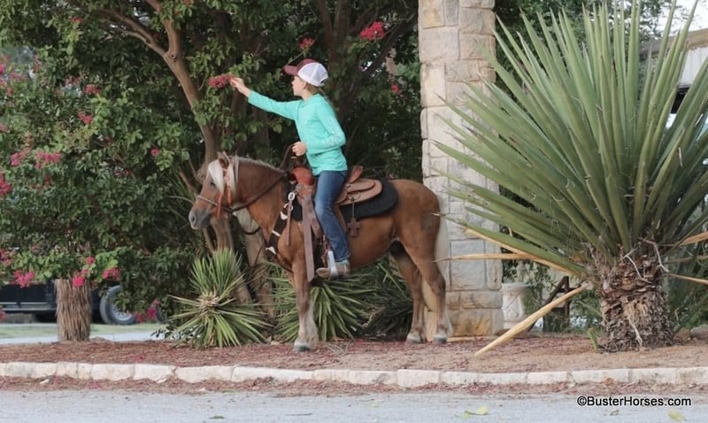 ONLINE AUCTION Place your bids at www.PlatinumEquineAuction.com Starting Bid $3500 Auction ends September 22nd, 2024 Need a new saddle? Check out White Rock Saddles on our website or Facebook! “Seahorse” is a trooper/soldier of a pony – he has been-there and done-that and seen-that. He is just the right size at 9.3h, the right age with plenty of experience at 16 years old where he has all the seasoning and miles to be able to take care of the teeny-tiny kids, but still young enough that he has plenty of spunk left for the older kids to ride and enjoy him. We shot the video of this pony, during “dead week” (That one awful last week of REAL summer heat in Texas – after the kiddos have all been in school for two weeks) everyone is a zombie this week, from the still 4AM before-the-heat wake up calls, then being in school all-day, plus after school sports practices and games… And even after “dead-week” – my daughter was still trying to fit riding this pony into her way-too-long of an exhausting day. He is a blast to ride, a size that is not intimidating for any size little rider, but still big enough for the older kids to ride too. He has a great little lope, a smooth little pokey pony jog/trot, and a great stop on “whoa”. He rides outside just as well as he does in the arena, he has been a ton of miles outside. Rides out great alone, or with a group of horses. He will go into, over, through, or onto absolutely anything that you point him at. He has a very simple, easy, point and shoot handle – uncomplicated to guide, he makes the kiddos comfortable and feel like they are in the driver’s seat. He has a big marching walk and if you need him to, he can walk out and keep up down the trail with the big horses. He easily crosses creeks, bridges, logs, goes into water. You can not replace the knowledge these teenage ponies and horses have to pass on to their next little riders, this guy has already been around the block a lot – and he knows the deal! He is easy to catch, easy to lead, load, hauls well with horses, stands tied like a soldier anywhere, great in the barn, and tied to the trailer, happy kept out, or kept in the barn, easy to trim, bathe, groom, saddle, and even the little-est kiddos can halter and bridle him. If you are looking for a fun little pony that is the right age and size for the whole family of kiddos to all enjoy, don’t miss our little soldier, “Seahorse”. Seahorse was just trimmed this past week and two weeks ago had his teeth done by our equine dentist, at that time his ears were preemptively treated for ticks, and his sheath was also cleaned. He was also just power pack wormed. He will arrive at his new home up-to-date and ready to go to work! We are experienced, knowledgeable sellers, and we can help with quickly arranging affordable shipping to any buyer’s location – we have experience shipping worldwide – including regularly to Hawaii, Canada, Mexico, Europe, and South Africa. Located in Weatherford, TX. Contact Buster Horses Ashley 214-605-7174 Check our website for buyer reviews, additional videos, pics, info, etc: https://busterhorses.com/Seahorse ONLINE AUCTION Place your bids at www.PlatinumEquineAuction.com Starting Bid $3500 Auction ends September 22nd, 2024 Need a new saddle? Check out White Rock Saddles on our website or Facebook!