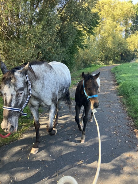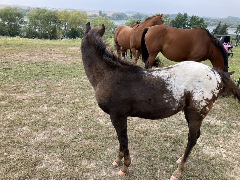 Zum Verkauf steht mein POA Hengstfohlen Somersault Sunshine. Er stammt von meiner reinrassigen Appaloosa Stute Saulti und dem wunderschönen POA Hengst Sonnyside und wurde im Mai 2025 geboren. POA Papier, 6 Panel n/n Der kleine Hengst Somer, ist sehr gelehrig, neugierig und entspannt. Das Fohlen ABC sitzt und Hufbearbeitung erfolgt regelmäßig. Er zeigt tolle Bewegungen und hat viel Potential. Wenn man sich die beiden Elterntiere anschaut kommt daher ein gutes Exterieur und ein wunderbarer ausgeglichener und neugieriger Charakter. Geschätztes Endmaß wird 1,44-1,48m. Auf den letzten Bilder sieht man ihn noch im Fohlenfell, jetzt wird er immer dunkler. Somer wächst 24h auf der Weide im Herdenverband auf, kennt aber natürlich auch die Box. Er kann gern jederzeit kennengelernt werden. Somer steht aktuell noch mit seiner Mutter zusammen. Kennt es jedoch längere Zeit allein in der Herde zu stehen und geht entspannt allein spazieren. Im März beginne ich dann ihn komplett abzusetzen und in eine Wallachherde zu integrieren. Meldet euch gern bei Interesse. Videos sind ebenfalls vorhanden. (Stammbaum trage ich die Tage noch komplett ein) Liebe Grüße