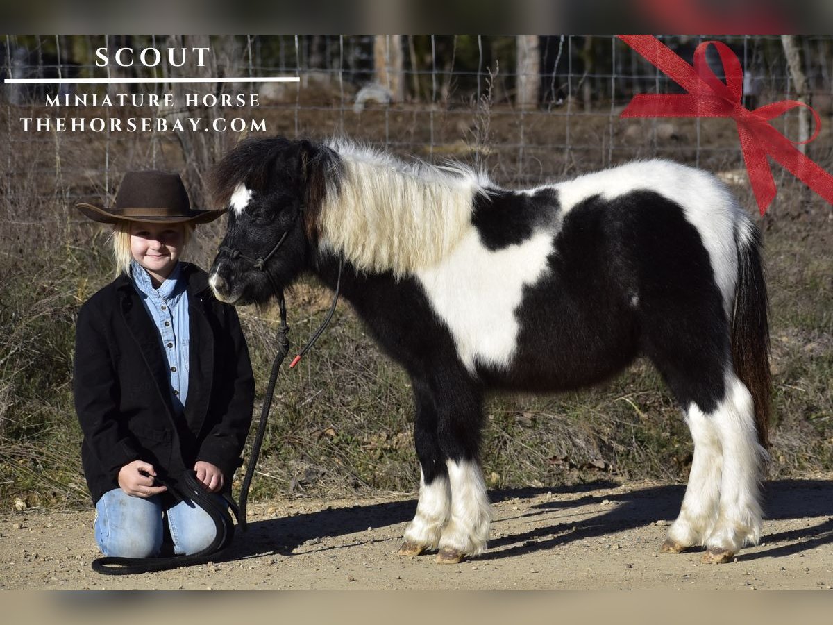 Die Bess Pony Collection ist stolz darauf, Scout anbieten zu können. Ein entzückendes Miniaturpferd, das absolut voller Persönlichkeit ist und ein Herz von der Größe von Texas hat. Er wurde seit seiner Geburt täglich behandelt und ist im Grunde schon dressurmäßig ausgebildet. Er geht an der Leine, überquert die Plane, folgt in Freiheit und lässt sich ruhig striegeln und mit dem Gebläse abblasen. Er geht auch auf allen vier Pfoten und lässt sich ruhig satteln; leichter Nylonsattel zu diesem Zeitpunkt. Er ist immer gut gelaunt und liebt Menschen über alles. Er hängt in Freiheit im Hof herum und kommt jedes Mal, wenn Sie nach draußen gehen, zu Ihnen gelaufen. Scout ist ein wunderschönes Baby, aber er hat auch eine gute, solide Grundlage und hat in seinem jungen Alter schon viel erlebt. Er stammt aus einer grau-weißen Paint-Stute und hat bereits dunkle, graue Stellen. Seine Mutter und sein Vater hatten beide eine lange Mähne und einen langen Schweif, und es ist offensichtlich, dass auch er das Haar-Gen geerbt hat. Er ist definitiv ein einzigartiges Pony und zuckersüß. Er möchte einem Kind das schönste Weihnachtsfest seines Lebens bereiten.