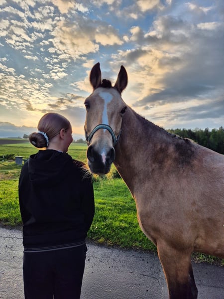 Unsere Tochter reitet ihn regelmäßig aus, sowohl alleine als auch in Gruppen – dabei zeigt er sich jederzeit entspannt, sicher und unkompliziert.