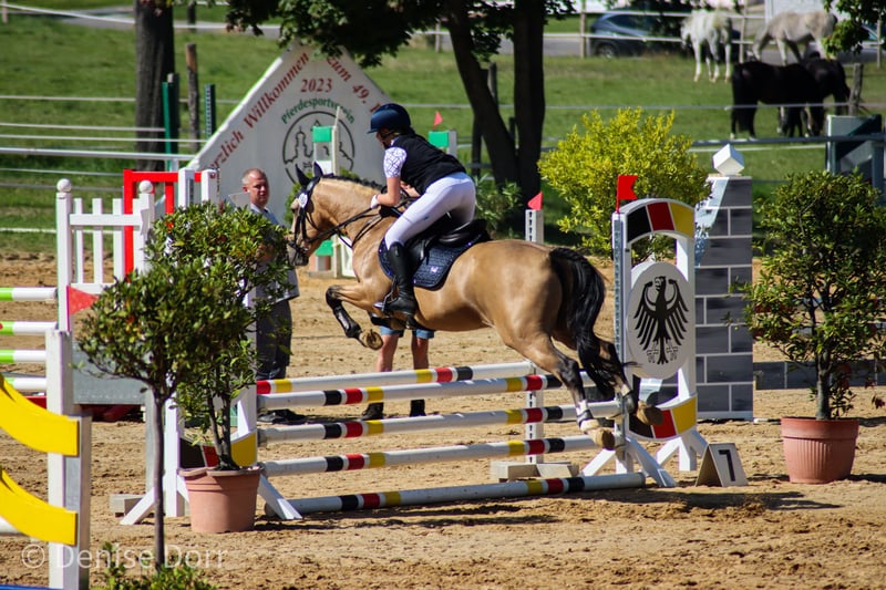 • Siegreich in E-, A- und L-Dressuren (auch gegen Großpferde)