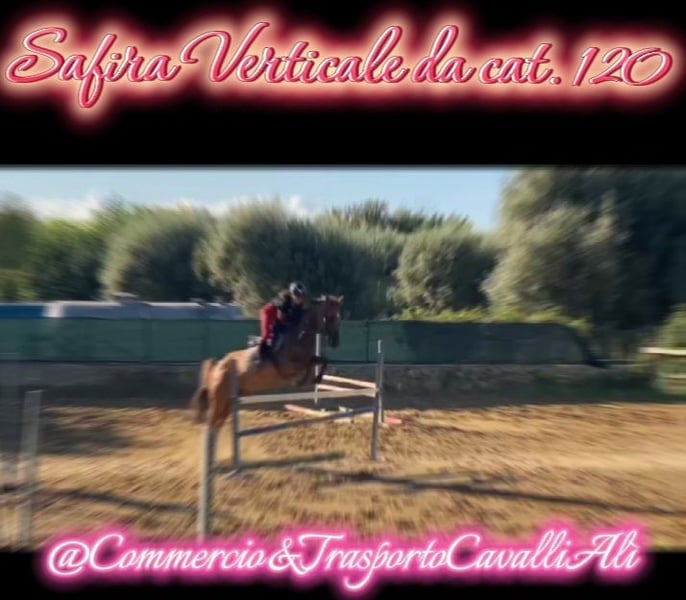 Pony skokowy Samica, bardzo grzeczna ze wszystkimi typami jeźdźców, doświadczenie w zawodach SEF ITALIA, starty w kategorii 110 z bardzo dobrymi wynikami, pokonywała przeszkody w ujeżdżalni o wysokości 120, bardzo utalentowana, w celu uzyskania dodatkowych zdjęć i filmów proszę o kontakt. DOSTĘPNY TRANSPORT NA CAŁEJ EUROPIE.