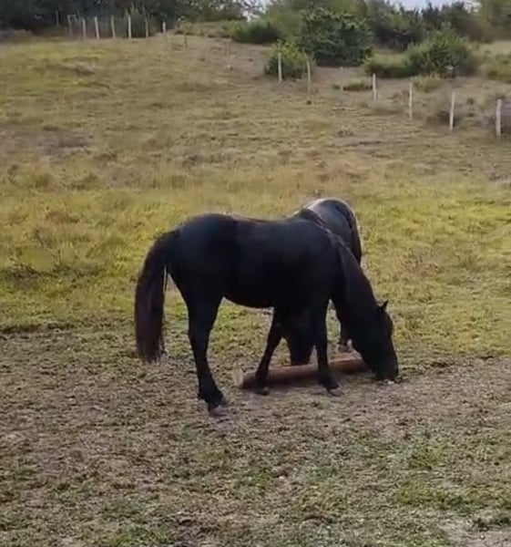 Tutti e tre i Pottok sono nati nel branco sul monte Gorbeia, nei Paesi Baschi spagnoli. Sono stati affidati a una coppia anziana alla fine del 2024, provenienti dalla stessa genealogia del loro padre. I pony vengono ancora allevati in una vasta pascolo montano e vengono integrati con mangime una volta al giorno, per abituarli alla presenza umana. I video sono stati realizzati dopo la castrazione dei pony, avvenuta questa autunno. In quel momento erano temporaneamente ospitati in una stalla. Abbiamo due puledri dello stesso stallone, che ci ha colpito per il suo carattere amichevole e rilassato, nonostante si trovasse con il suo branco di femmine sul monte. Se interessati, posso mettere a disposizione i contatti in Spagna. Se non parlate spagnolo, posso aiutare nella comunicazione.