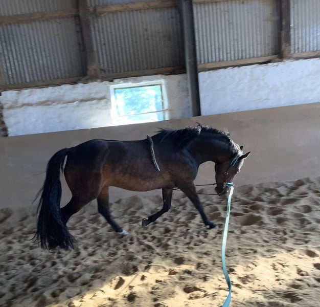 schweren Herzens habe ich mich dazu entschlossen wenn alles passt meinen Mecklenburger PRE Wallach Diego abzugeben. Diego wird im April 10 Jahre mit einem Stockmaß von 151 cm und ist seit 8 1/2 Jahren an meiner Seite. Ich habe Ihn damals als Hengstjährling gekauft und Ihn selber 4-jährig eingeritten. Diego ist sehr vielseitig, wird dressurmäßig sowie im springen bis 80cm Höhe mit Reiter als auch im Gelönde geritten. Hierbei zeigt er sich stets lernwillig, wobei er definitiv kein Anfängerpferd ist, denn wenn Ihm mal etwas nicht passt bzw. für seinen Kopf schwierig wird, zeigt er dieses auch. Ansonsten hat er viel Spaß an der Stangenarbeit und am frei springen. Diego steht hier im Winter Nachts in der Box und tagsüber auf dem Paddock und im Sommer 24/7 auf der Weide. Offenstall kennt er ebenfalls. Er wurde bei mir stets gesundheitlich abgecheckt, Zähne wurden im November erst vom Pferdezahnarzt gemacht, Hufe alle 6-8 Wochen, jährliche Kontrolle durch die Osteopathin zuletzt im Dezember, befunde liegen vor, Tierarzt war jetzt im Januar da zwecks Auffrischung der Impfungen. Es gibt noch einiges mehr zu erzählen, aber das würde dann die Anzeige sprengen :-) Er ist kein Notverkauf, ich gebe Ihn nur ab wenn zu 100% alles passt und nur weil ich durch berufliche Veränderungen und als Alleinerziehende Ihm nicht die Zeit und Aufmerksamkeit geben kann die er braucht. Dieses ist kein leichter Schritt für mich, ich wünsche mir für Ihn einfach das Beste.