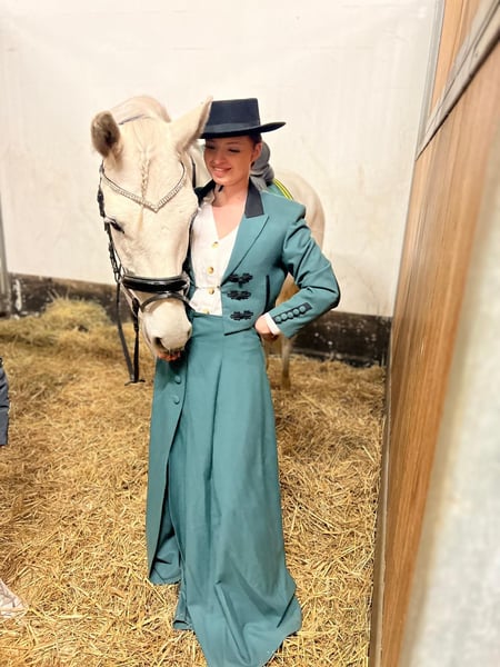 Hello, I’m glad you’ve come across this listing. First of all: - No riding school horses - Not suitable for beginners It is with a heavy heart that I have to part with my dream and heart horse. His name is Diestro, and he is now 10 years old. He stands at 158 cm at the withers. I purchased him from a riding school, and I want to ensure he doesn’t experience that environment again. He needs a stable, consistent owner—no more than two people. He truly cannot tolerate children and makes this very clear. Now, a bit about him: He is a small, compact Spanish gelding. His favorite thing is to look adorable while snagging any treat he can find. His riding style is quite broad-built. In dressage, he is solid at level A, although we are already working on higher movements such as traversals and gently approaching pirouettes. His personal talent lies in jumping; with a friend, he has already jumped a course of 1.10 m (not currently in training). I have ridden him in Spanish shows due to his versatile talent, with the Los Amigos team. He is most enthusiastic about working in Working Equitation, which we planned to start next year. He also masters tricks like Spanish walk, laying down, and bowing. Recently, we discovered liberty work, which he enjoys greatly and has taken his motivation to a new level. He stands calmly during farrier visits and loads onto the trailer without issues. He is very calm in both box and pasture stabling. I wish for him to find a wonderful home where he can form a strong bond and receive the attention he deserves. Feel free to contact me with any questions. (As long as he is still here, he will continue to be trained, which will increase his value.)