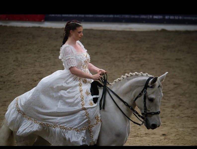 Hey schön das du es zu dieser Anzeige geschafft hast. Vorab: -Kein Schulbetrieb -Kein Anfängerpferd Ich muss mich leider schweren Herzens von meinem Traum- und Herzenspferd trennen. Sein Name ist Diestro und ist jetzt 10 Jahre alt. Er hat ein Stockmaß von 158cm. Selber habe ich ihn aus einem Schulbetrieb gekauft und möchte daher nicht das er sowas wieder erlebt, er braucht einen Festen Menschen, maximal 2. Kinder kann er dadurch tatsächlich gar nicht leiden und zeigt dies auch deutlich. Nun aber zu ihm. Er ist ein Kleiner kompakter Spanier Wallach. Seine Vorliebe ist für jedes Leckerchen was er abstauben kann lieb zu gucken. Seine Reiterliche spate ist breit gebaut. Dressur technisch ist er auf soliden A Niveau, wobei wir da schon an höheren Lektionen dran sind, wie Traversalen oder uns auch spielerisch an die Pirouette herantasten. Im Springen liegt Seine persönliche Begabung, da ist er mit einer Freundin schon einen Parcours von 1.10m gesprungen. ( gerade nicht im Training) Ich selber bin ihn durch seine vielseitige Begabung auf spanischen Shows geritten, mit den Los Amigos. Wo er aben den meisten Sinn sieht zu arbeiten ist die Working Equitation, in der wir nächstes Jahr starten wollten. Tricks wie Spanischer Schritt, Ablegen, oder Kompliment beherrscht er ebenfalls. Gerade neu entdeckt haben wir die Freiarbeit, die ihm viel Spaß bereitet und seine Motivation auf neue Level gebracht hat. Er ist steht ruhig beim Schmied und lässt sich ohne Probleme verladen, steht auch sehr ruhig auf dem Anhänger. Er kennt Box und Offenstall Haltung. Ich wünsche mir ein Wunderschönes Zuhause für ihn, wo er tollen Anschluss findet. Weitere Fragen gerne per Nachricht. (Solange er noch hier ist wird er weiterhin ausgebildet, was den Wert steigern wird.)