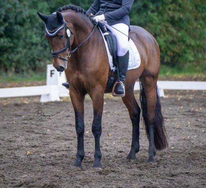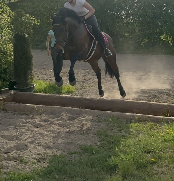 Palermo ist ein 9-jähriger PRE-Wallach mit vollem ANCCE-Papier (gekört, Abstammung größtenteils Yeguada Militar), der mit seinem stolzen Ausdruck und guten Charakter schnell begeistert. Er zeigt sich im täglichen Umgang als vertrauensvoller und leistungswilliger Partner, der seinem Reiter sowohl im Training als auch allein oder mit anderen im Gelände Freude bereitet. Unterm Sattel ist Palermo aufmerksam und möchte gefordert werden, er denkt beim Reiten viel mit und braucht sinnvolle Beschäftigung. Er kennt aus seiner bisherigen Ausbildung in der Vielseitigkeit sowohl die Dressurarbeit, den Springparcours als auch das Geländetraining. Neuen Aufgaben stellt er sich mutig und motiviert und bietet seinen Reiter damit die Möglichkeit ebenfalls dazuzulernen. Gesucht wird daher ein erfahrener Reiter, der an einer vertrauensvollen Beziehung zu seinen Partner Pferd interessiert ist, ihn fördert und zu schätzen weiß. Palermo lernt schnell und möchte Abwechslung in seiner täglichen Arbeit. So lernt er auch gerne mal kleine Tricks. Er bockt, steigt, beißt und tritt nicht. Er war bereits auf Wettbewerben nach WBO und bei einem Reitabzeichenlehrgang RA 5 vorstellig und kennt auch Auswärstraining. Er ist verladefromm. Aktuell läuft er mit barhuf. Er wird regelmäßig entwurmt und ist halbjährlich geimpft. Es bestehen keine gesundheitlichen Einschränkungen! Er kennt die Boxenhaltung mit regelmäßigen Koppelgang in einer kleinen Wallachherde. Er ist leichtfuttrig. Um mein Pferd nur ernsthaften Interessenten vorzustellen, bitten ich um eine Probereitgebühr von 50€. Diese wird beim Kauf selbstverständlich vollständig angerechnet. Auf Wunsch sende ich gerne weitere Videos. Seine Sättel (Dressur Jorge Canaves Miro IV & Spring HorseStar Endeavour) können auf Wunsch mit erworben werden.