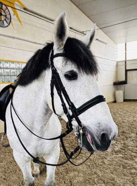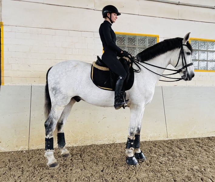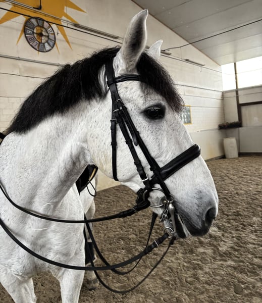 This large-framed grey gelding is well-trained and offers a comfortable seat. He performs lateral movements and extended canter with ease. He is reliable in handling and has a steady character. For further questions, please call 01722420434. Visit BarockmeetsClassic.de