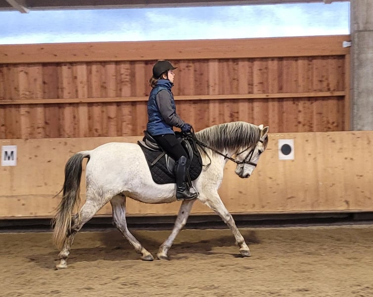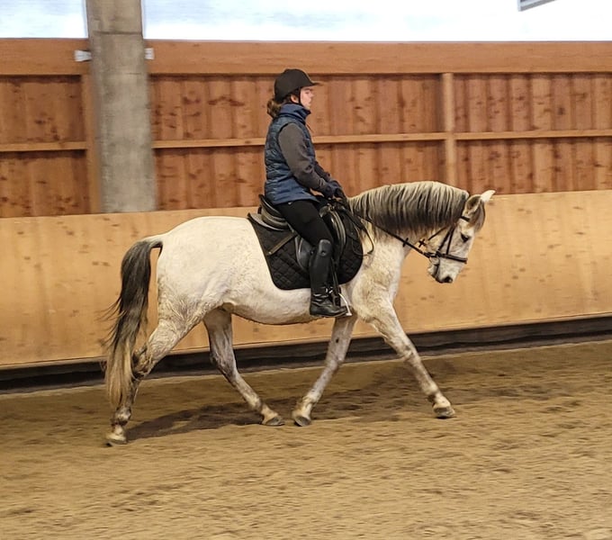ROSSO ist ein wunderschöner, sehr eleganter P.R.E. Apfelschimmel Wallach. Seine Ruhe und Gelassenheit lassen auch einem noch etwas unsicheren Reiter sehr schnell Vertrauen zu diesem Prachtburschen fassen. ROSSO verzeiht Reitfehler und pariert durch, wenn er merkt, dass sein Reiter unsicher wird. ROSSO ist sehr leichtrittig und äußerst bequem zu sitzen. Er hat drei wunderschöne Grundgangarten. ROSSO ist sehr menschenbezogen und liebt es betüddelt zu werden. Besonders liebt er u. a. die Arbeit mit Kindern und Jugendlichen. Ob im Viereck, Allwetterplatz oder im Gelände, ROSSO geht gut vorwärts, ist nicht triebig, aber auch nicht zu flott unterwegs. ROSSO ist ein Pferd, dass sich den Ansprüchen seines Reiters anpasst, der sich auf seinen Reiter einstellt. Nicht nur unter dem Sattel, sondern auch bei der Bodenarbeit und im alltäglichen Umgang vermittelt ROSSO durch sein gutmütiges Gemüt Sicherheit und zeigt auch sein großes Vertrauen zum Menschen. ROSSO empfiehlt sich besonders für den Umsteiger vom Pony zum Pferd. ROSSO lebt bei uns in einer gemischten Offenstallherde und verträgt sich sehr gut mit seinen Artgenossen. ROSSO kennt auch Boxenhaltung, für die er ebenfalls sehr gut geeignet ist. ROSSO, ein Pferd, dass seinen Menschen nicht jeden Tag vor neue Herausforderungen stellt. Nähere Informationen über unsere Pferde und unsere Arbeit erhalten Sie unter 0171/5269002 Hubert Seitle und 0151/12775701 Uta Großmann. Allgemeine Informationen über unsere Pferde und unsere Arbeit erhalten Sie auch unter www.ps-seitle.de