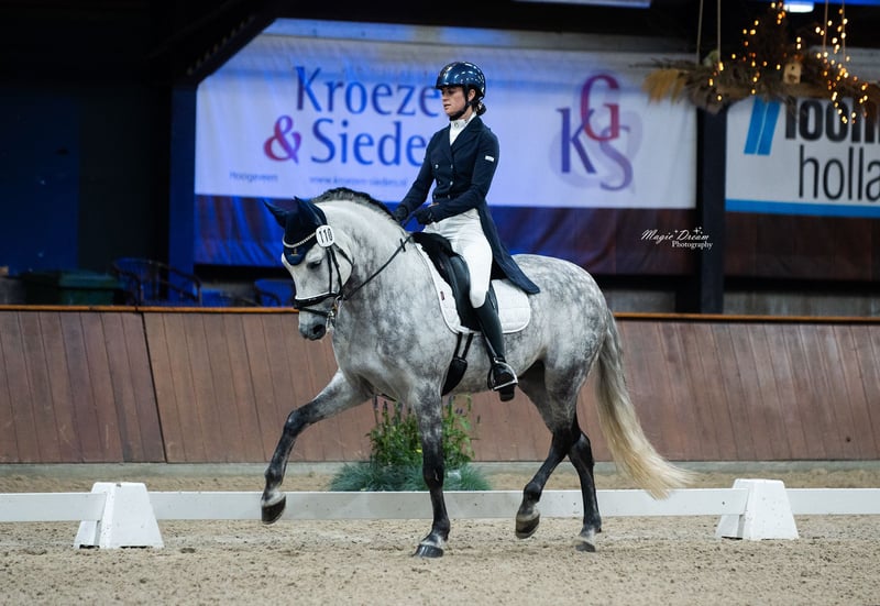 Met pijn in mijn hart bied ik mijn unieke paard Lamborghini Veneno te koop aan. Dit is geen standaard paard, maar een echte persoonlijkheid met veel ervaring, uitstraling en potentie voor de juiste ruiter. Veneno is een 11-jarige (deze maand 11 geworden) PRE ruin met Carta, sinds 6 jaar in mijn bezit en afkomstig uit Sevilla. Hij is relatief laat ingereden en daardoor fysiek en mentaal goed behouden. Prestaties & ervaring •Z1 dressuur +winst geklasseerd •3e plaats Nederlands Kampioenschap MCI (klasse Jonge Paarden) •2e plaats Nederlands Kampioenschap MCI - kür op Muziek (Level 1) •2x team goud Europees Kampioenschap MCI •Ervaring met kür op muziek en internationale wedstrijden (o.a. Parijs) •Allround inzetbaar: dressuur, springen (80/90 cm incl. wedstrijdervaring), working equitation, oefencross, grondwerk (incl. piaffe), Pas de Deux (Z-niveau) •Veel ervaring op vreemd terrein, meerdaagse trainingen en evenementen •Veneno heeft een sterke, correcte bouw en beschikt over 3 goede, ruime gangen (geen korte of hectische PRE-draf). Daarnaast beschikt hij over goede springtechnieken. Karakter & rijden Veneno is een eerlijke ruin met een sterk karakter en veel gevoel. Hij is geen “altijd automatisch voorwaarts” paard en kan soms aan de luie kant zijn, maar kan ook juist veel energie laten zien en sensibel reageren op de hulpen. Dit betekent dat je onder het zadel een paard hebt met twee kanten: •dagen waarop hij ontspannen en nuchter is (dit komt nu het meest voor) •en momenten waarop hij meer energie heeft en sensibel kan reageren Hij is daardoor niet geschikt voor onzekere of onervaren ruiters, maar juist voor iemand die: •duidelijk en consequent rijdt •gevoel heeft voor timing en energie In de juiste handen is hij een zeer leuk, veelzijdig en betrouwbaar paard om mee te werken! Omgang •Braaf en betrouwbaar in de omgang •Niet eenkennig: meerdere ruiters hebben hem naast mij bijgereden •Kinderen hebben (onder begeleiding) op hem gezeten •Sociaal naar andere paarden (alleen of in groep) •Makkelijk te laden (ook alleen) •Zeer geschikt voor buitenritten, ook langere ritten (alleen en in groep) •Verkeersmak •Gaat probleemloos mee op verplaatsing (trainingen, wedstrijden, vakanties) Gezondheid & verzorging •Nooit kreupel geweest •Sterke hoeven (loopt zonder ijzers) •Braaf bij hoefsmid, dierenarts en tandarts (jaarlijks bijgehouden) •Licht gevoelig voor suikers (management vereist) •In de zomer baat bij bescherming tegen insecten Wat ik voor hem zoek Voor Veneno zoek ik een ervaren ruiter die hem genoeg afwisseling en aandacht kan bieden. Iemand die geniet van een prachtig Spaanse ruin met karakter en gevoel. Een goed en blijvend thuis is voor mij het allerbelangrijkst. De reden van verkoop is dat mijn eigen ambities momenteel veel tijd vragen, waardoor ik de keuze heb gemaakt om te stoppen met de sport. Veneno verdient iemand die hem weer volop de aandacht kan geven. Prijs €22.500 Alleen reageren bij serieuze interesse en passend budget. Bezichtiging en proefrijden uitsluitend bij wederzijds goed gevoel. Contact Bij voorkeur eerste contact via WhatsApp of e-mail. Telefonisch meest bereikbaar in de avonden of overdag op dinsdag en in het weekend. Stamboom https://www.lgancce.com/lgpreancce/asp-publico/arbolGenealogicoPRE/ConsultarArbolGenealogicoPRE.aspx?ID=LBrEpyI5pZ4= Filmpjes Ik heb een paar korte reels of story's op mijn instagram: Yojoline