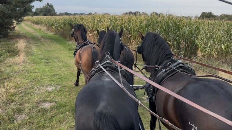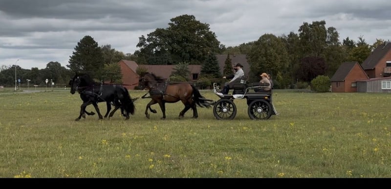 Ein echtes Herzenspferd sucht seinen Menschen Dieser wunderschöne braune P.R.E. Wallach, mit ANCCE - Papieren, geboren am 21. 09.2015, ist ein Pferd, das man nicht nur reitet oder fährt – sondern eines, das man ins Herz schließt. Mit einer Größe von 1,65 m und seiner harmonischen Ausstrahlung begeistert er durch Präsenz, Eleganz und vor allem durch seinen außergewöhnlich lieben , ehrlichen und zuverlässigen Charakter. Seit er fünf Jahre alt ist, befindet er sich in unserem Besitz und wurde mit viel Geduld, Ruhe und Herz ausgebildet. Er ist menschenbezogen, freundlich und absolut ehrlich und völlig unkompliziert im Umgang – ein Pferd, dem man vertrauen kann und das Freude bereitet. Unter dem Sattel zeigt sich Quimbo angenehm zu reiten, er beherrscht den spanischen Schritt sowie auch die Seitengänge . Er ist brav und aufmerksam, sowohl im Freizeitbereich als Reitpferd sowie auch auf Fahrturnieren, wo er mit seiner Arbeitsfreude überzeugt. Ein ganz besonderes Highlight ist seine Erfahrung vor der Kutsche: Er ist 1 -bis 7-spännig sowie auch Tandem gefahren , nicht nur im Freizeitbereich, sondern auch auf großen Fahrturnieren, wie zum Beispiel CHIO Aachen , Celler Hengstparade und viele andere. Er beweist dabei beeindruckende Nervenstärke, Übersicht und Zuverlässigkeit – ein echtes Ausnahmepferd in diesem Bereich. Dank seines ausgeglichenen Wesens ist er ideal für Familien, ambitionierte Freizeitreiter oder insbesondere auch für Kutschfahrer die ein vielseitiges, ehrliches Pferd suchen, das sowohl im Alltag als auch bei besonderen Momenten an ihrer Seite steht. Uns ist besonders wichtig, für Quimbo einen Menschen zu finden, der mehr als nur Besitzer ist – jemanden, der für ihn eine feste Bezugsperson wird. Quimbo bindet sich eng an seine Menschen und soll auch in Zukunft ein stabiles, liebevolles und pferdegerechtes Zuhause bekommen, in dem er geschätzt, gefördert und umsorgt wird. Der passende Platz ist uns wichtiger als ein schneller Verkauf, daher wird Quimbo nur in gute private Hände verkauft. Selbstverständlich ist Quimbo Schmiede -/ und Verladefromm Für weitere Fragen oder auch Bilder / Videos von Quimbo schreibt mich gerne an.