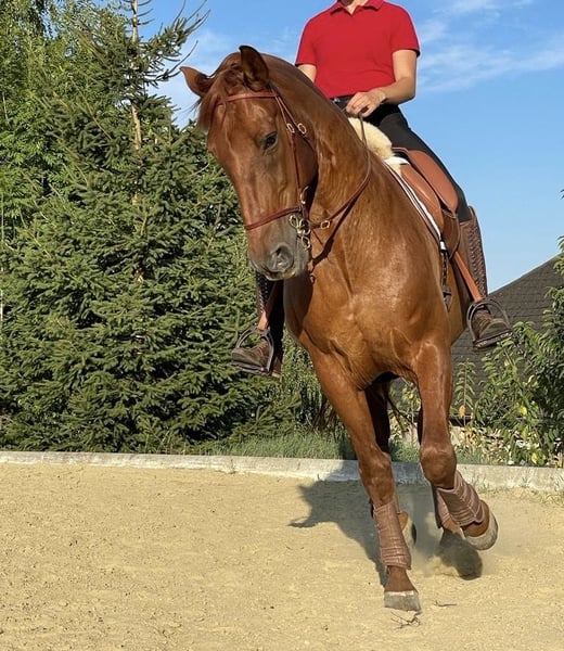 Verkaufe diesen wunderschönen PRE-Andalusier Fuchs. Mit seinem knalligen Rot und seinem Charmanten Charakter sticht er immer von den anderen Pferden heraus.